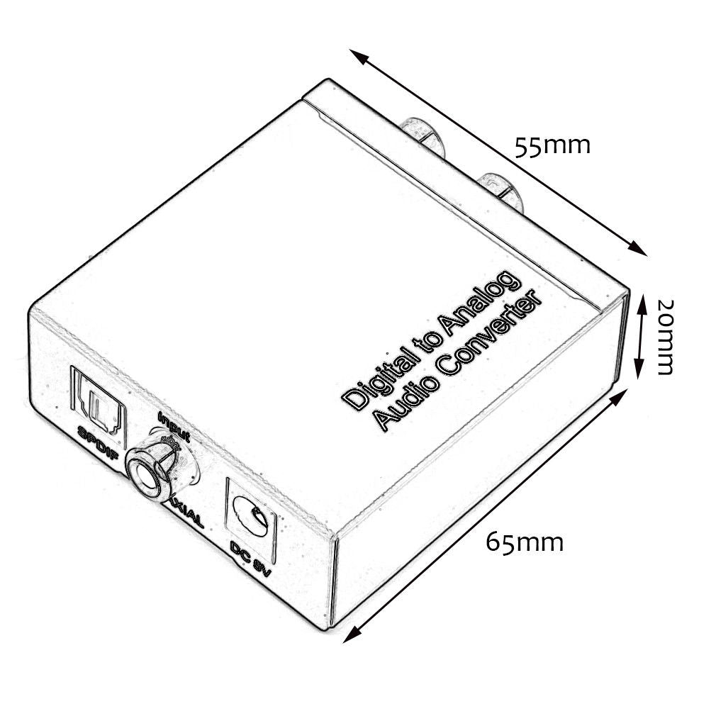 Digital to Analog Audio Converter Fiber Adaptor RCA 3.5 mm Jack 2 Port L R LPCM
