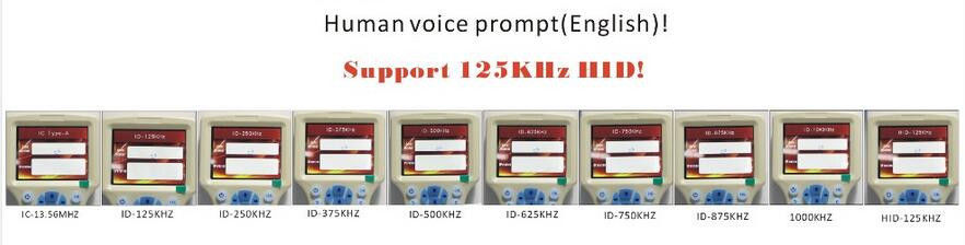 3 can replicate these frequencies of the card ID with IC card: 125KHz, 250kHz, 500KHz, 375KHz, 750kHz, 875KHz, 1000KHZ, 13.56MHz,
