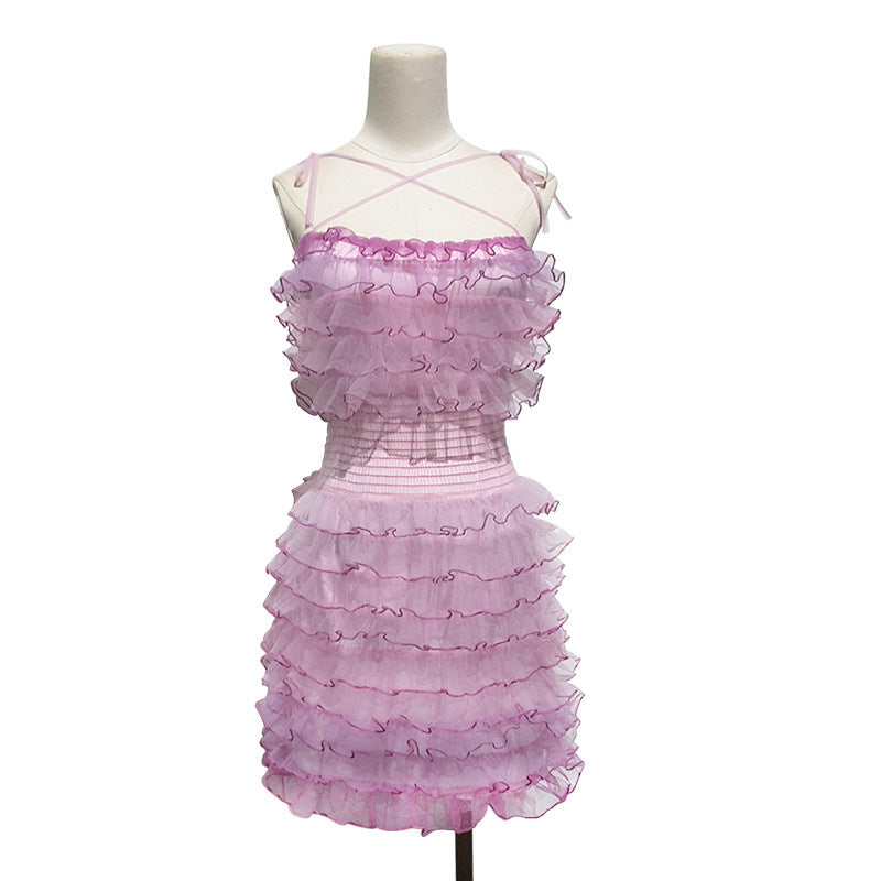 Summer Beach Women Tie Dye Gradient Strap Tube Top Sweet Ruffled Style High Waist Cake Short Dress