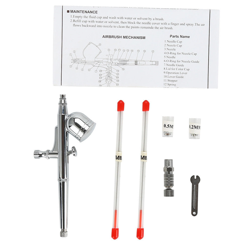0.2 mm Dual Action Gravity Feed Airbrush Spray Gun Paint Tattoo Art DIY Tool Kit