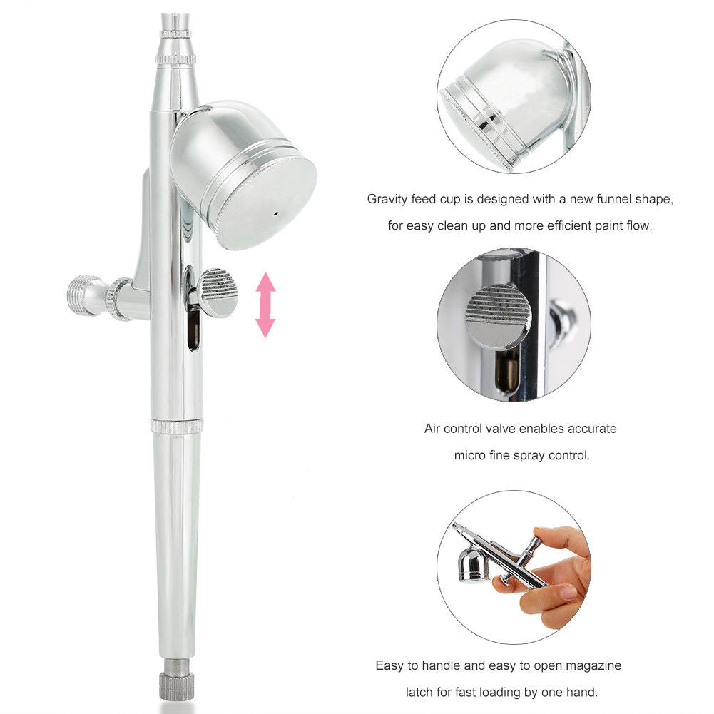 Dual-action gravity feed airbrush for artist painting, model painting, nail art, disposable tattoo, DIY hand painting, cake decorating, spray painting, leather repair, hobbies, etc.