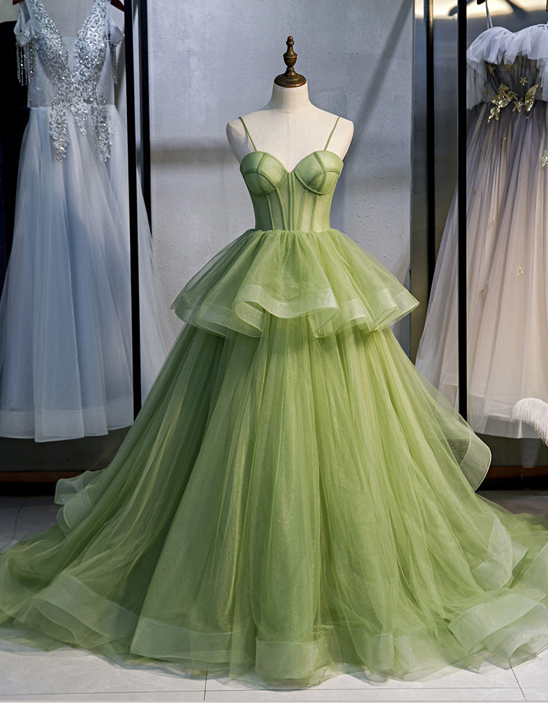Banquet Trendy Quinceanera Green Evening Ball Temperament Fairy Spaghetti Strap Lady Trailing Big Swing Dress
