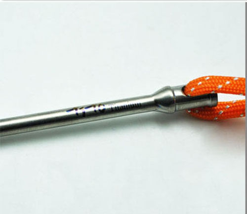 A lighter version of our popular Titanium Nail Peg, thisTitanium Nail Peg - Ultralight can be driven into hard soil without getting bent or damaged. Reflective cord offers increased visibility and easier removal.