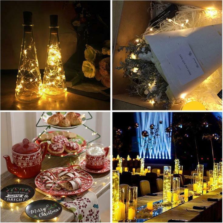 FLEXIBLE COPPER WIRE EASILY BENDED INTO ANY SHAPE YOUR DESIRE. And Steady Lighting.You can make full use of your Empty Bottles to DIY the beautiful garden decor, deck decor, patio decor, fence decor, Christmas Outdoor Decor, Halloween Decor, etc. And the wire lights are waterproof, so it will be absolutely safe if you want some water in the bottle. (The cork is not waterproof).