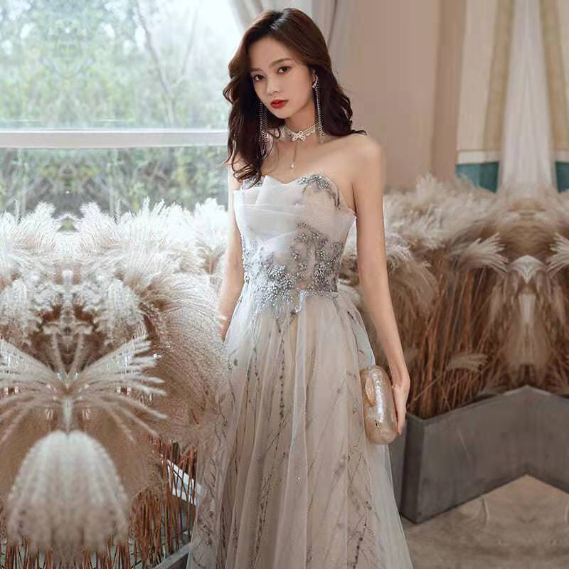 Attractive Elegant Banquet Fairy Evening Off Shoulder Strapless Off White Ball Gown Women Prom Dress