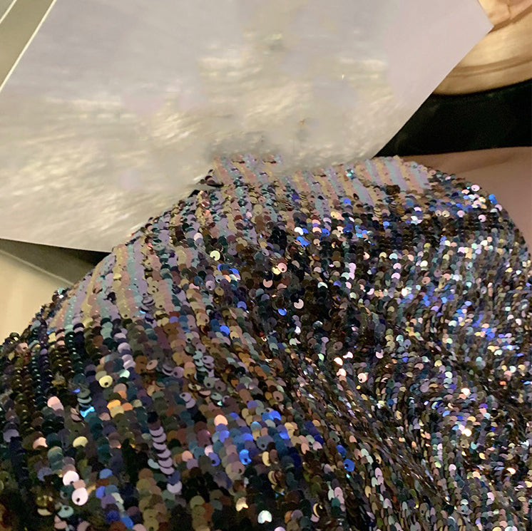 Attractive Princess Mermaid Colorful Striped Sequins Backless Spaghetti Strap Sexy Woman Sparkling Dress