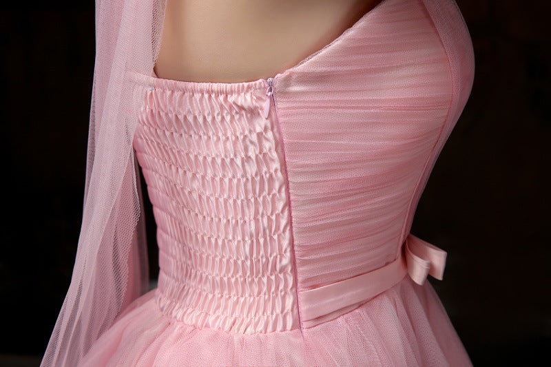 Beautiful Strapless Evening Pink Color Beading Prom Tutu Bridesmaid Dress