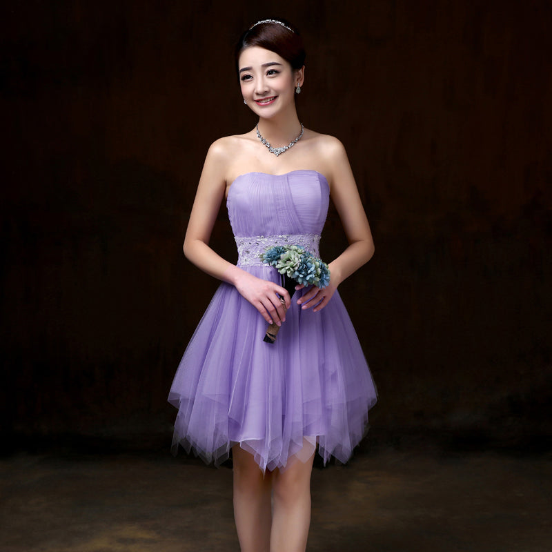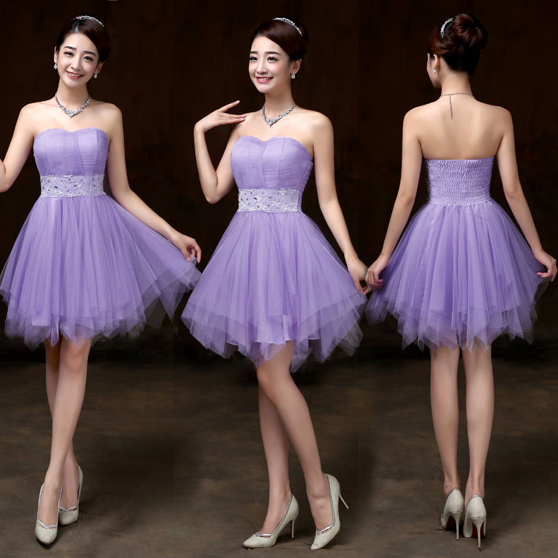 Beautiful Strapless Evening Purple Color Beading Prom Tutu Bridesmaid Dress