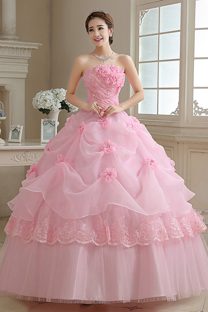 Beautiful Women Attractive Floral Pleated Waist Lace Tube Off Shoulder Top Bridal Tutu Large Big Swing Layer Cake Party Prom Dress