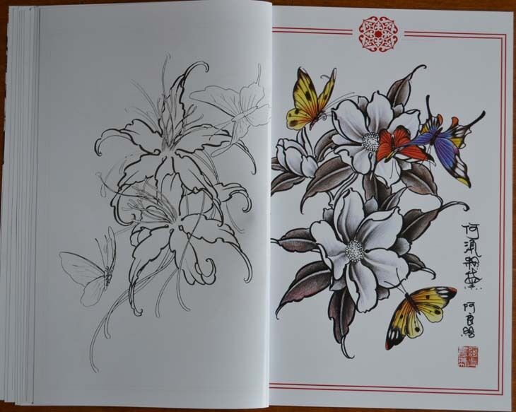 A4 Butterfly and Flowers Tattoo Art Flash Sketch Book x 1 pc