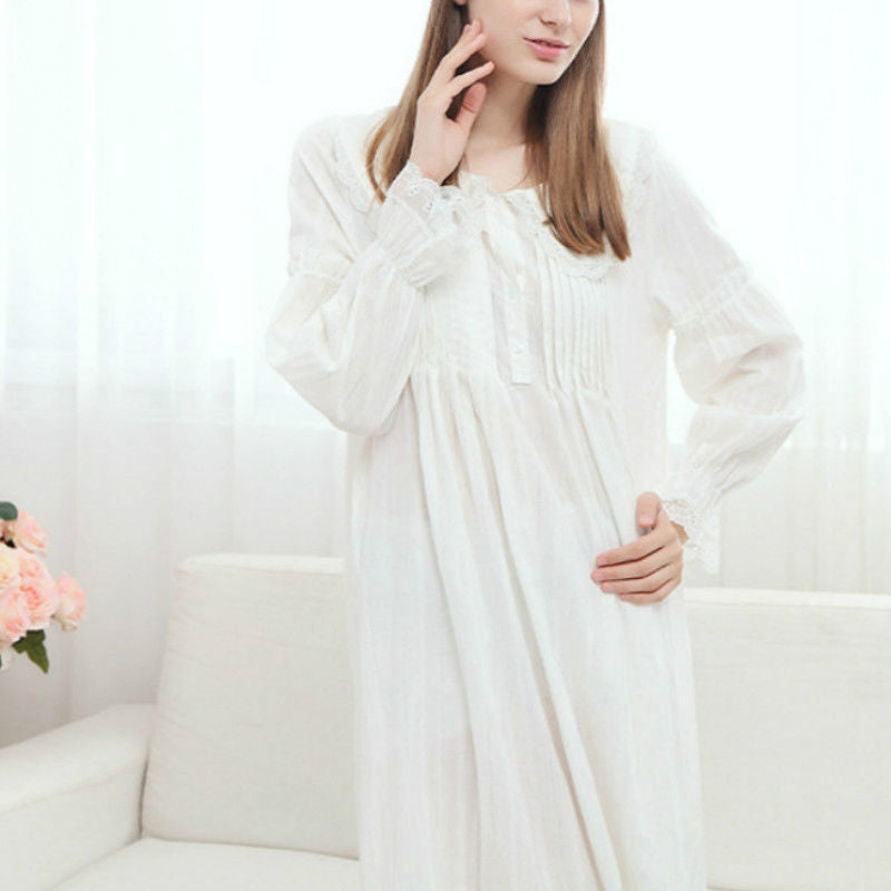 Comfortable Lolita Cotton Night Sleep Dress Wear Lace Ruffle Peter Pan Collar