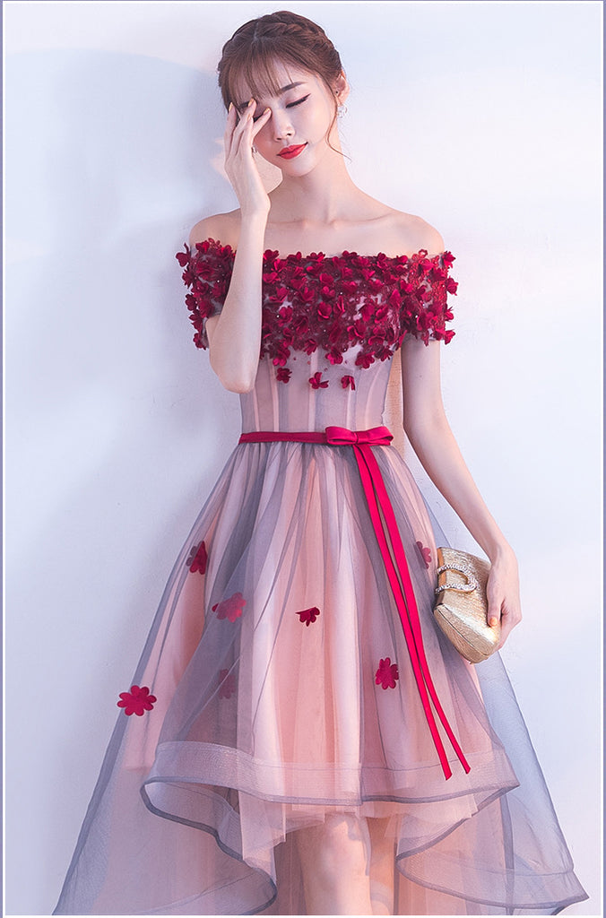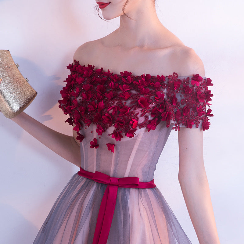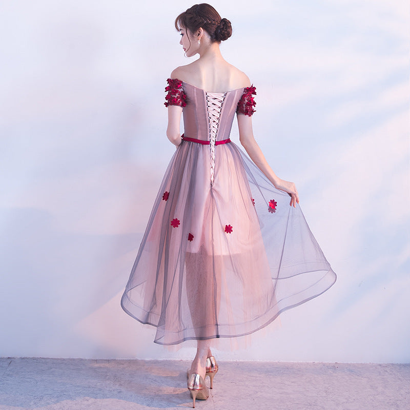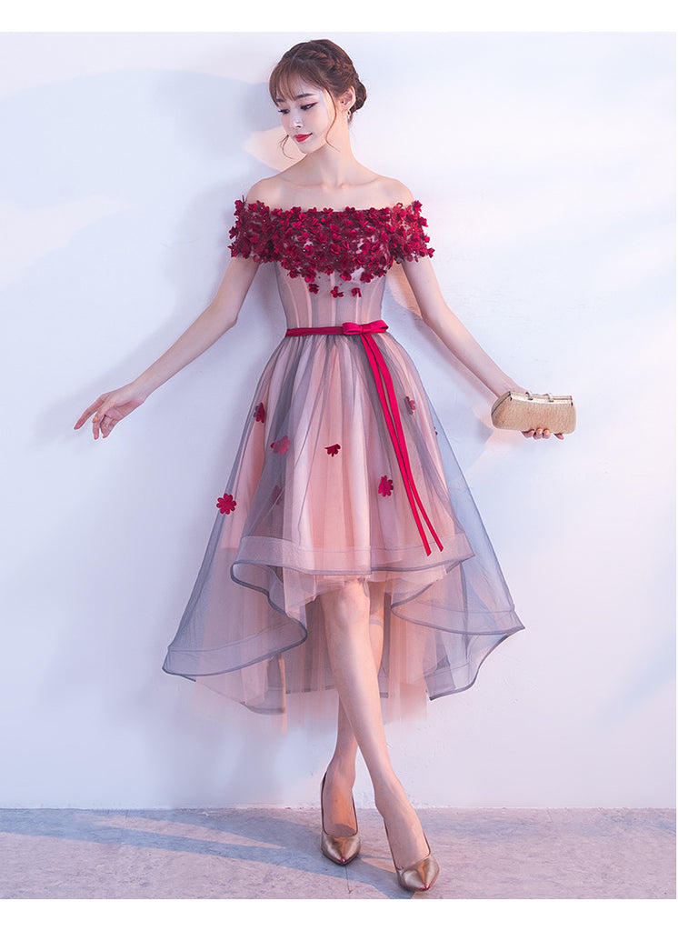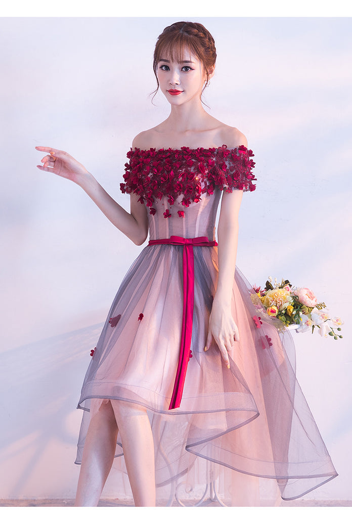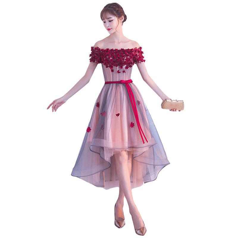 Elegant Absolutely Love Evening Off Shoulder Banquet Birthday Party Appliques Flowers Dinner Irregular Dress