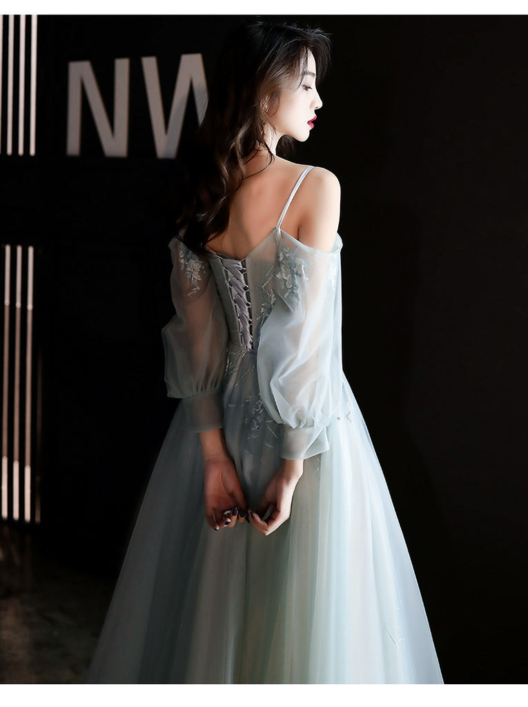 Elegant Cozy Sexy Women Sweetheart Spaghetti Straps Lace Up Tulle Robes Long A Line Evening Dresses