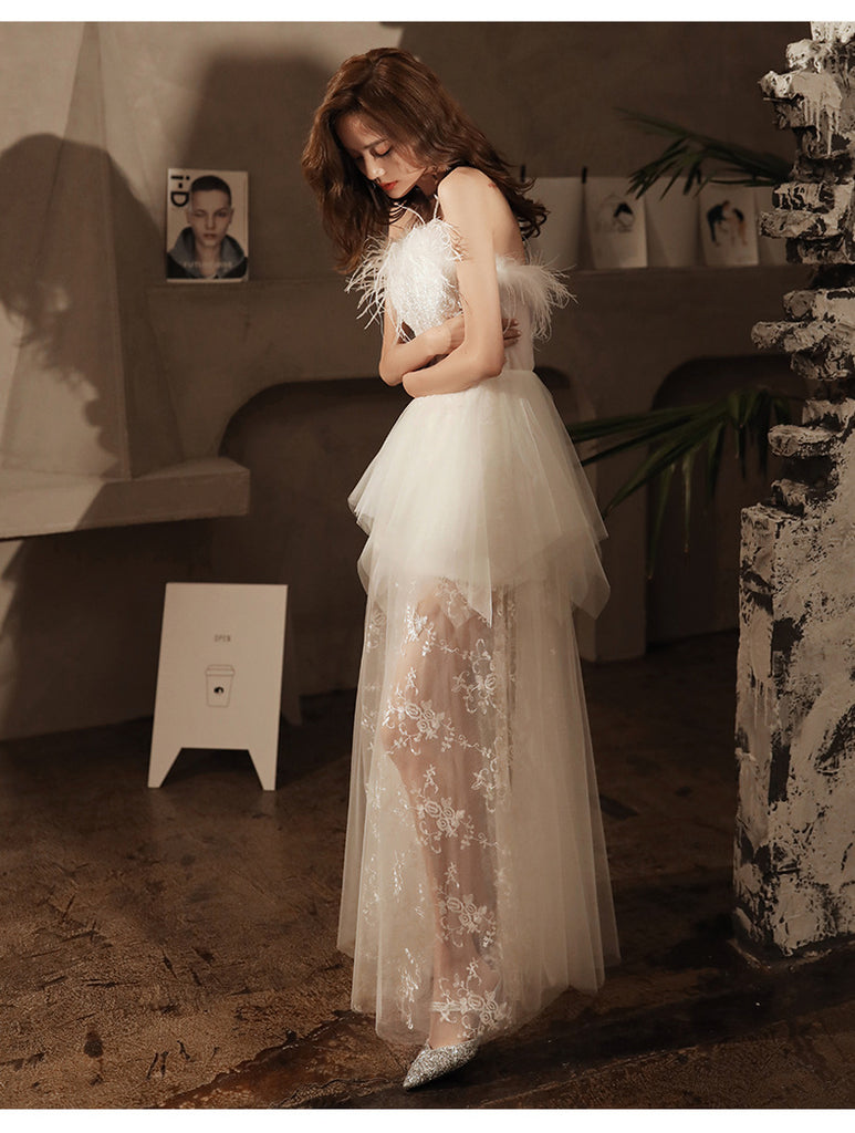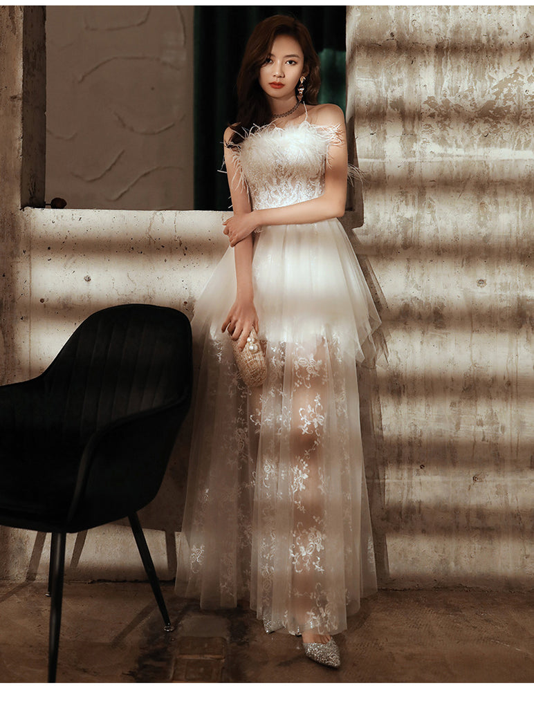 Elegant Evening Party Half Sleeves Black Long Short Embroidery Knee Length Irregular Hem Dress