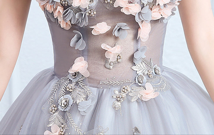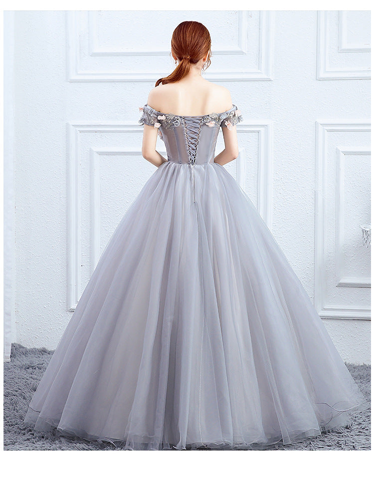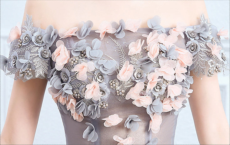 Elegant Evening Stage Off Shoulder Floral Embroidered A line Princess Skirt Long Dress Ball Gauze Gown