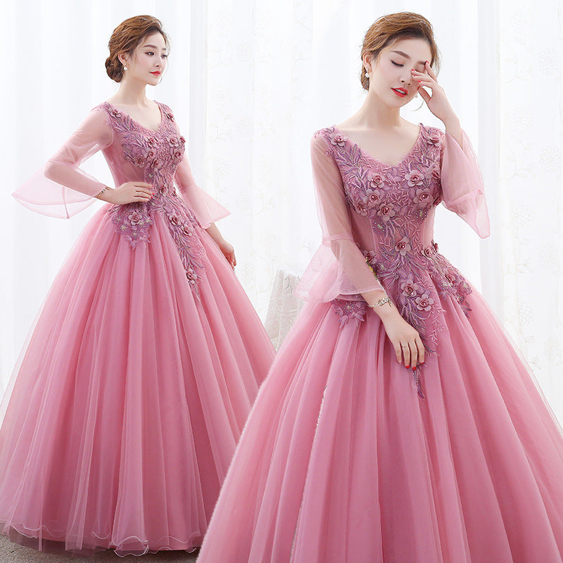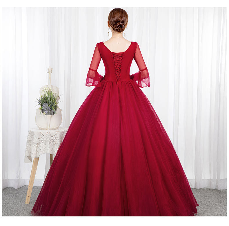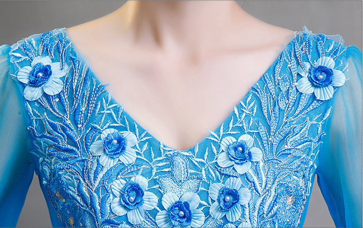 Elegant Evening Stage Short Sleeve Embroidered A line Princess Tutu Skirt Long Dress Gauze Gown