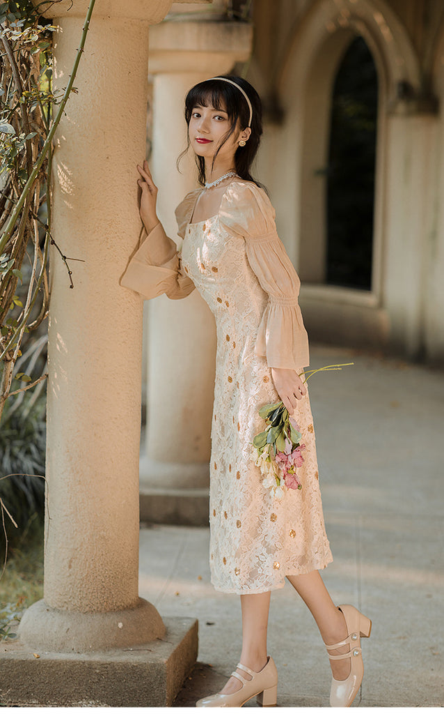 Pattern: Square Collar, Lace Dress