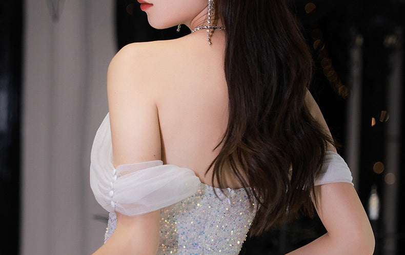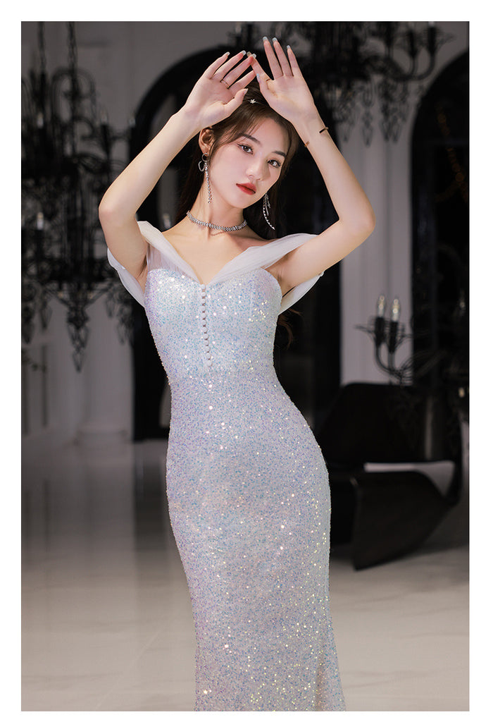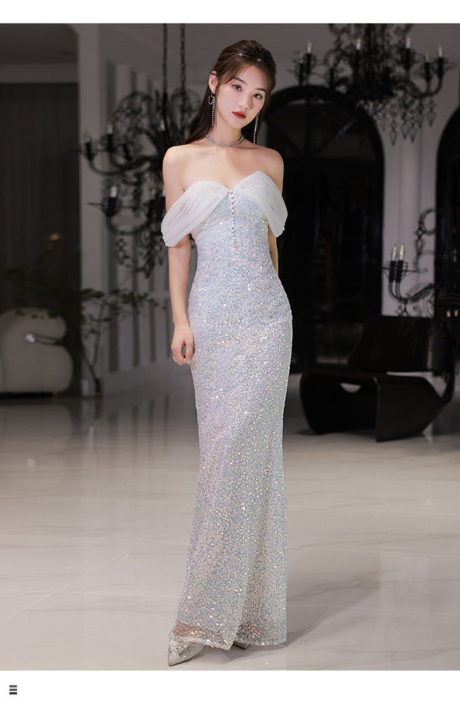 Pattern: Off Shoulder, Shiny Sequin, Fishtail Prom Dress