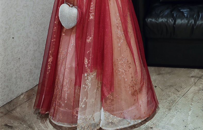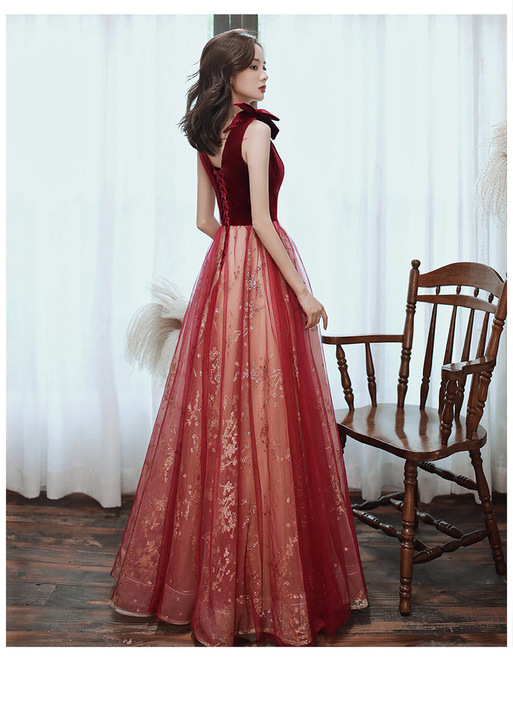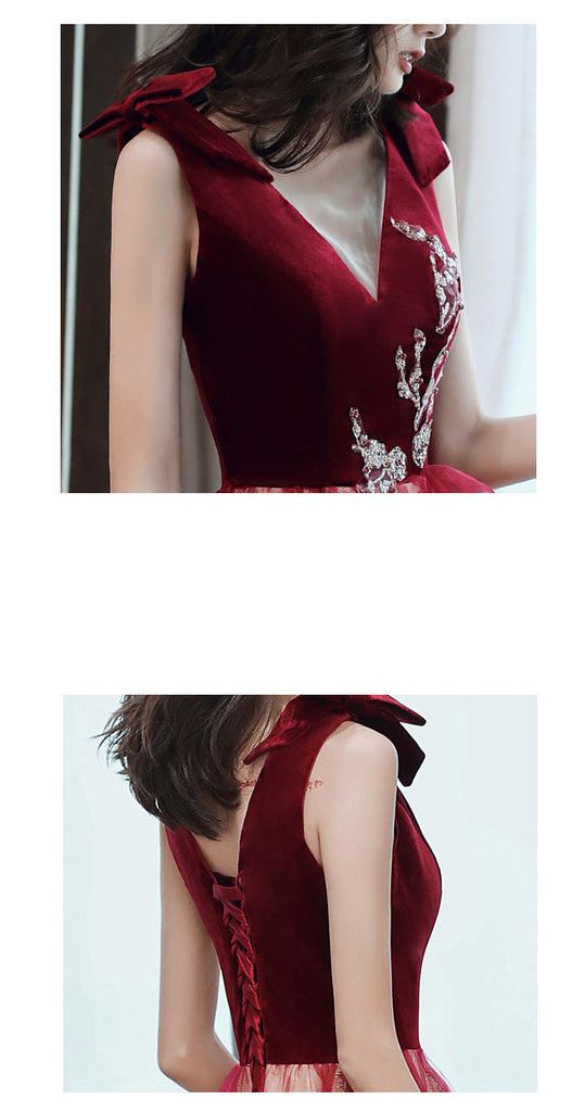 Evening Burgundy Bride Temperament Queen Embroidery V Neck Long Floor Length Ball Dress