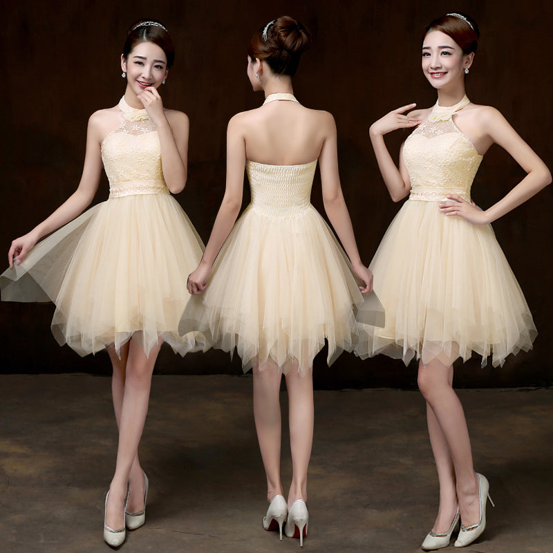Evening Party Halter Light Yellow Color Beading Prom Tutu Bridesmaid Dress