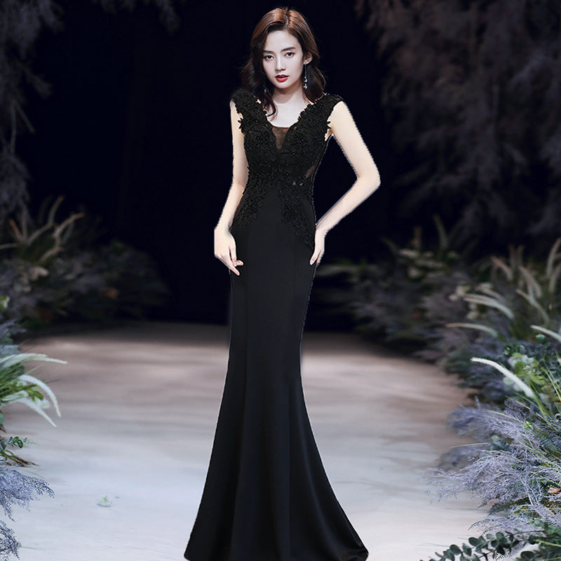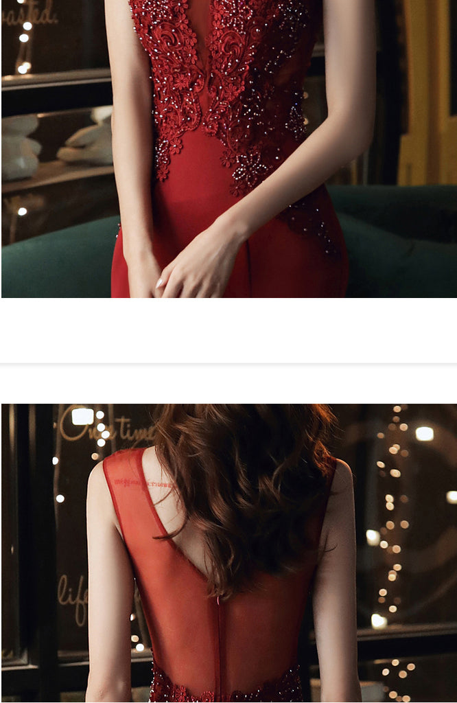 Fairy Temperament Attractive Women Evening V Neck Sleeveless Bridesmaid Long Fishtail Dress
