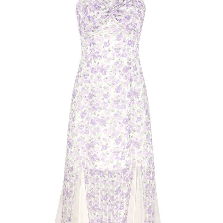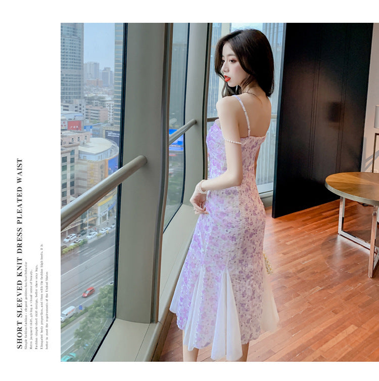 Good quality French Design Outdoor Wear Fishtail Purple Floral A Line Dress