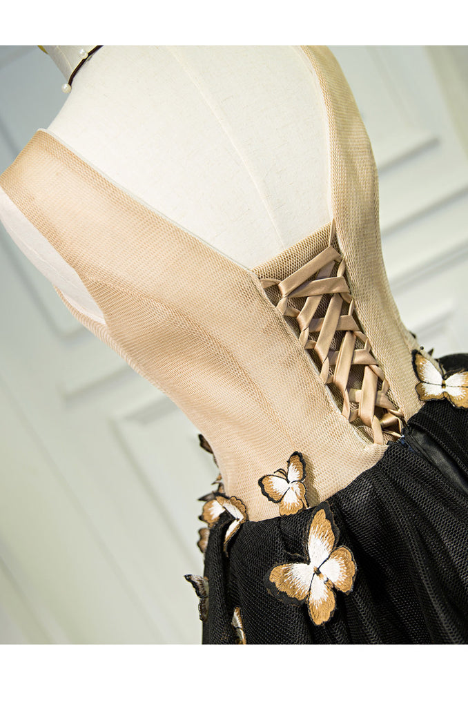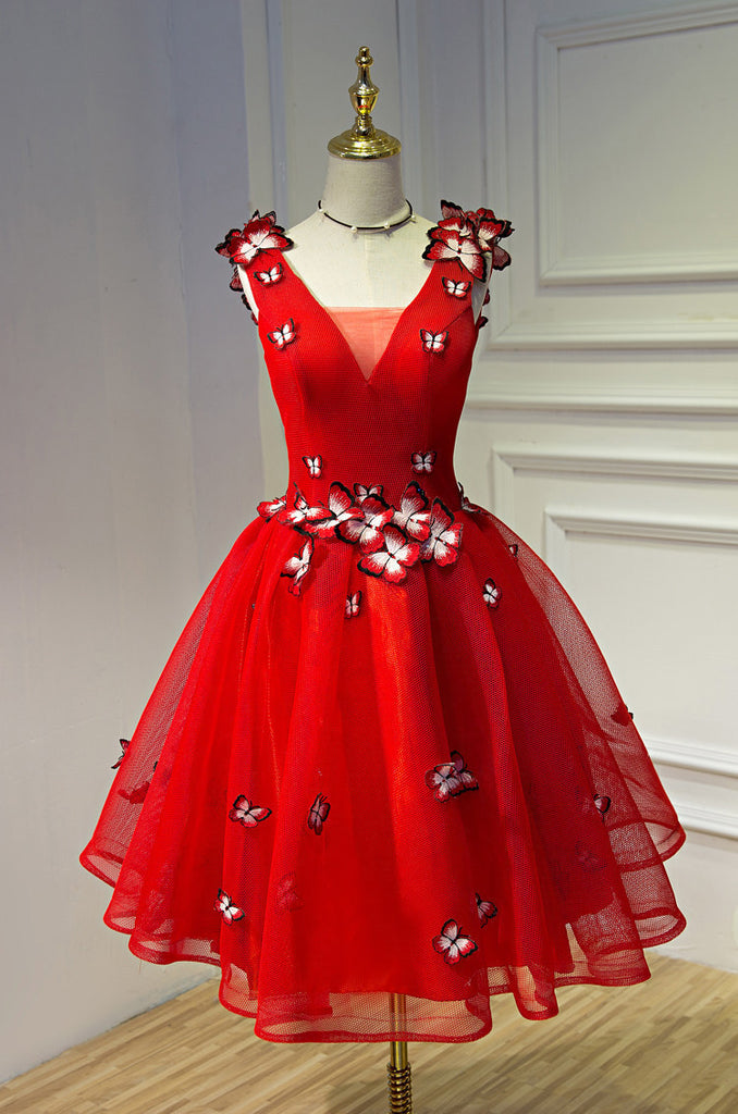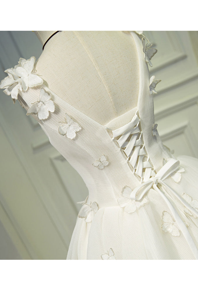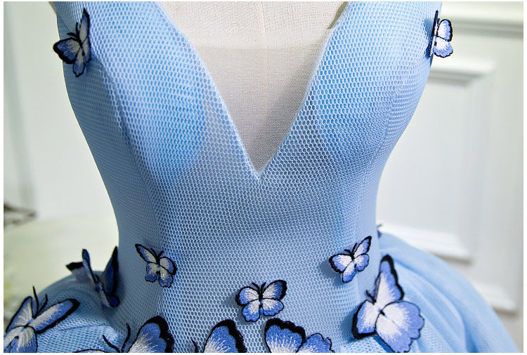 Gorgeous Evening Women Sky Blue Retro V-Neck 3D Butterfly Ball Gowns Short Prom Homecoming A Line Dress