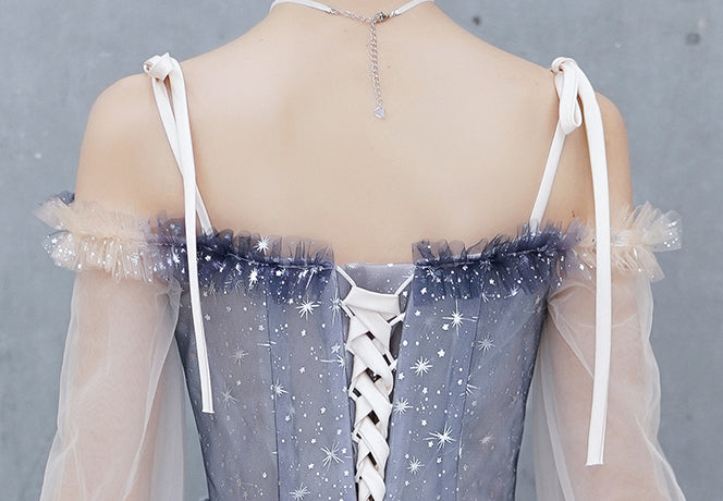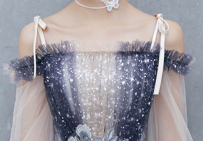 Gorgeous Fairy Temperament Banquet Evening Shoulder Strap Floral Waist Mesh Sleeves Women Dress