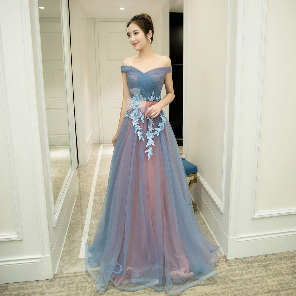 Gorgeous Stylish Grey Banquet Evening Strapless Bridal Bridesmaid Princess Long Elegant Tulle Prom Dress