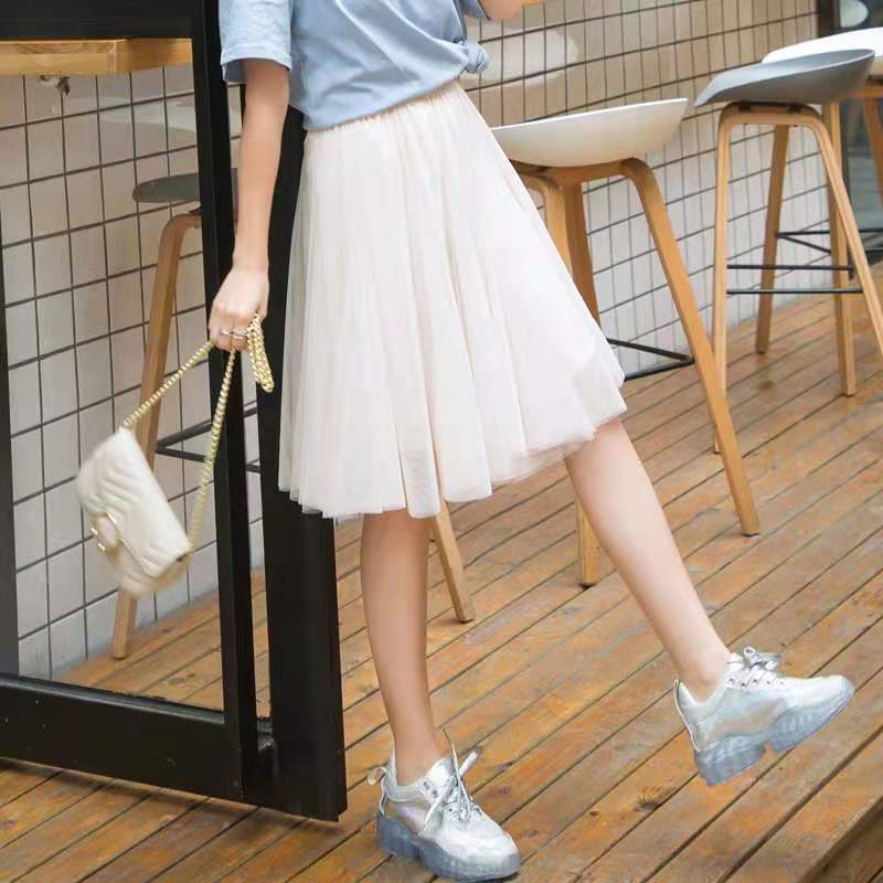 Great Perfect Beautiful Women Elastic Solid Color Mesh High Waisted Gauze Skirt Tulle Skirts