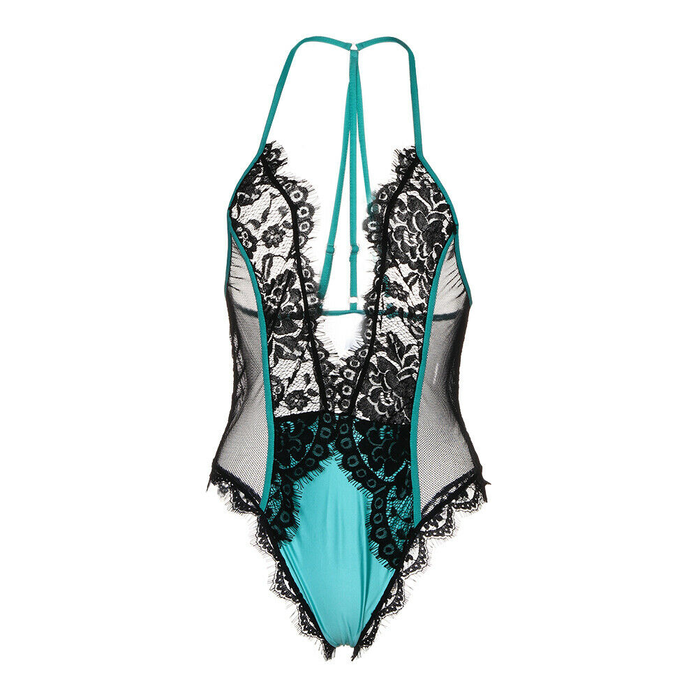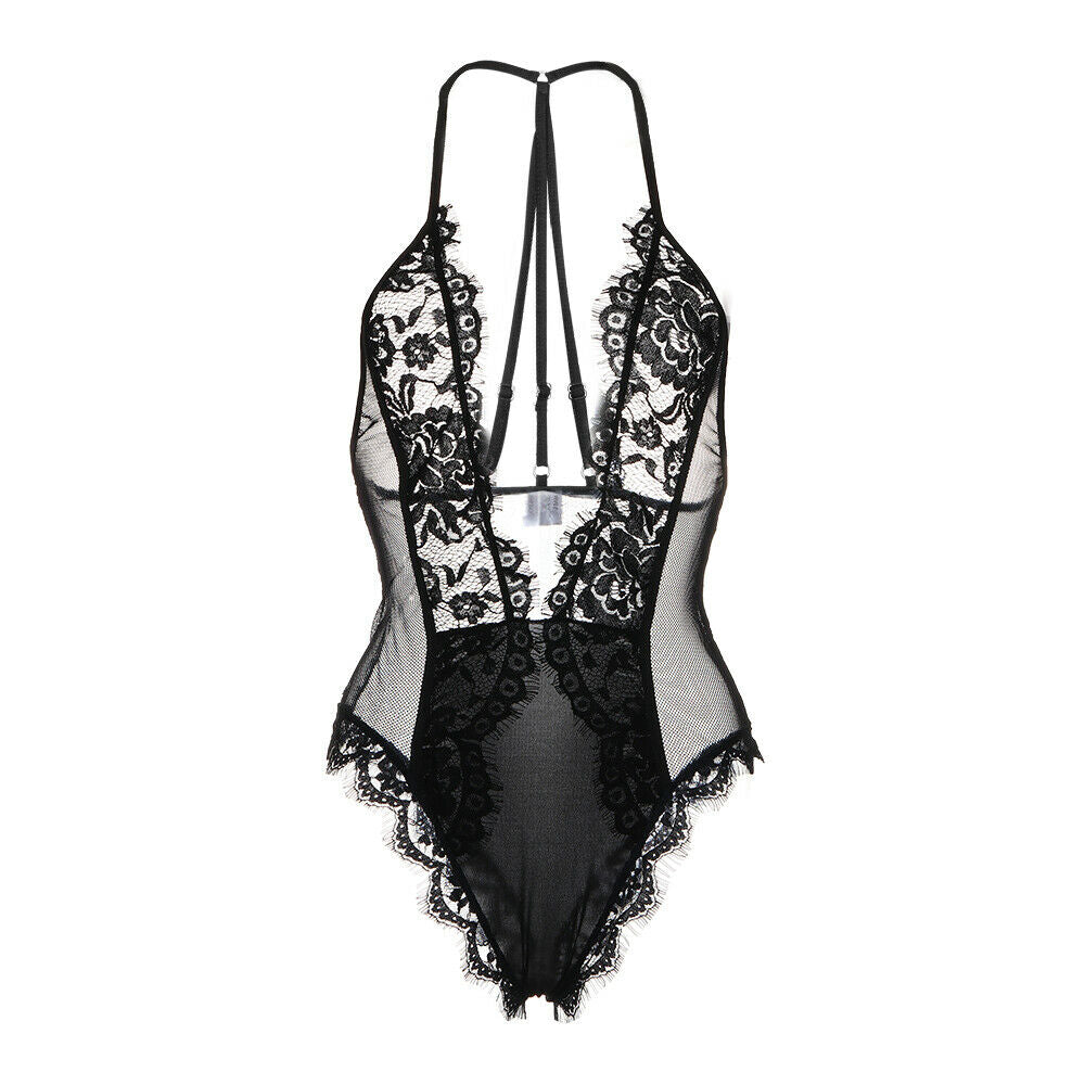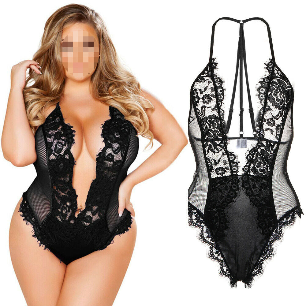 Halter Babydoll Plus Big V Size Women Sexy Lingerie Lace Bodysuit Teddies Wear