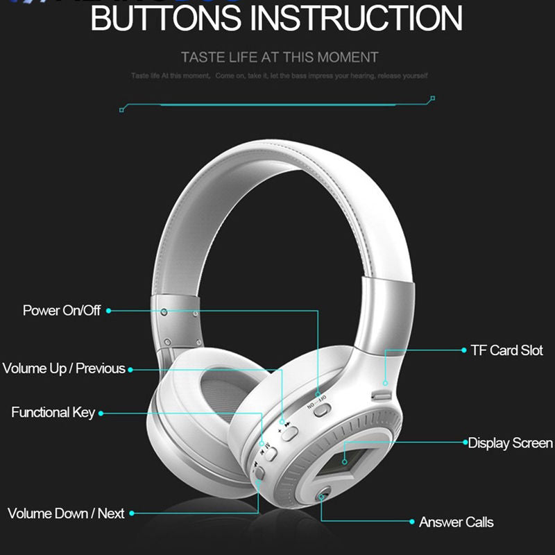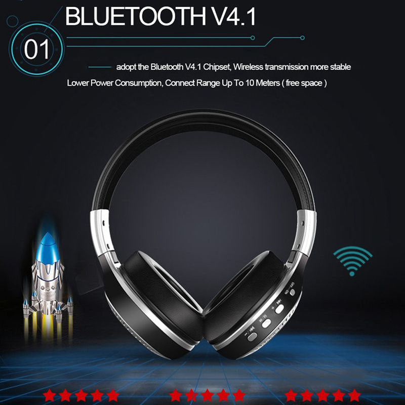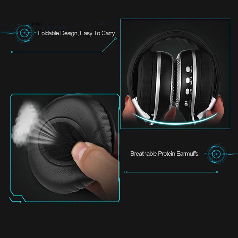 HiFi Stereo Bluetooth Earphone FM Radio Foldable Headphones Wireless MP3 Player