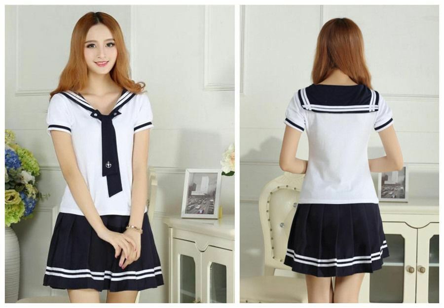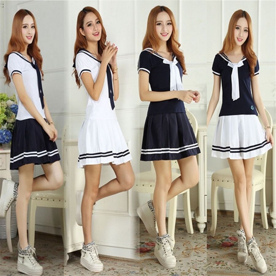 Japan Cute Girls Sailor Suit Students School Dress Looks Cute Outfits Lolita T Shirt Skirt
