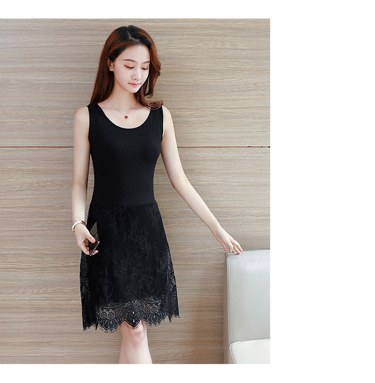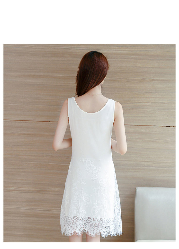 Lace Vest Women Milky White Mid Length Sleeveless Mesh Round Neck Dress