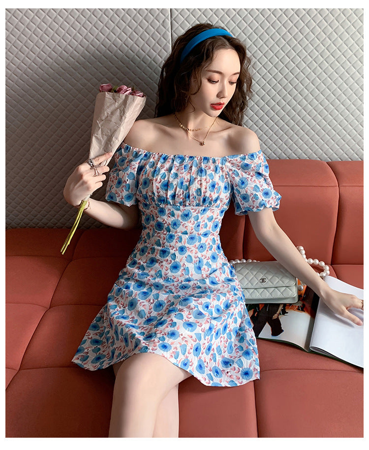 Pattern: Square Neck, Short Sleeved ,High Waist Dress