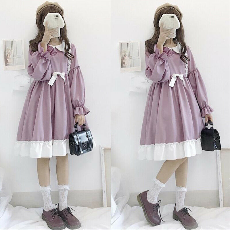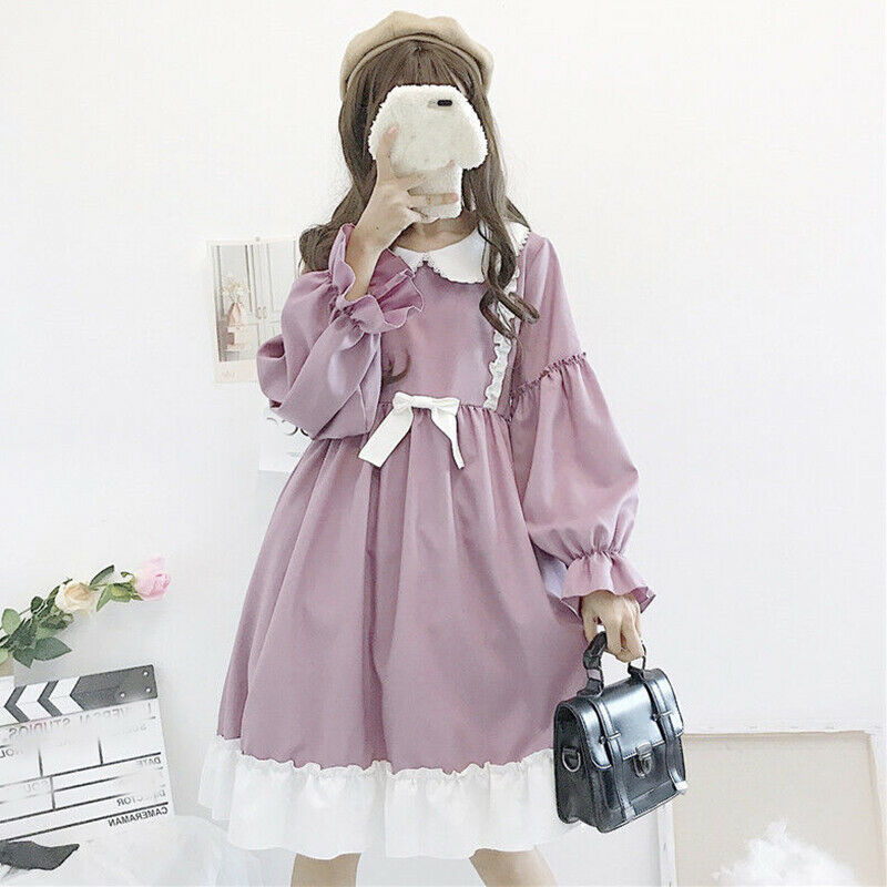 Lovely Cheers Lolita Sweet Girls Bow Ruffles A Line Dress Long Sleeve Princess Dress Dresses