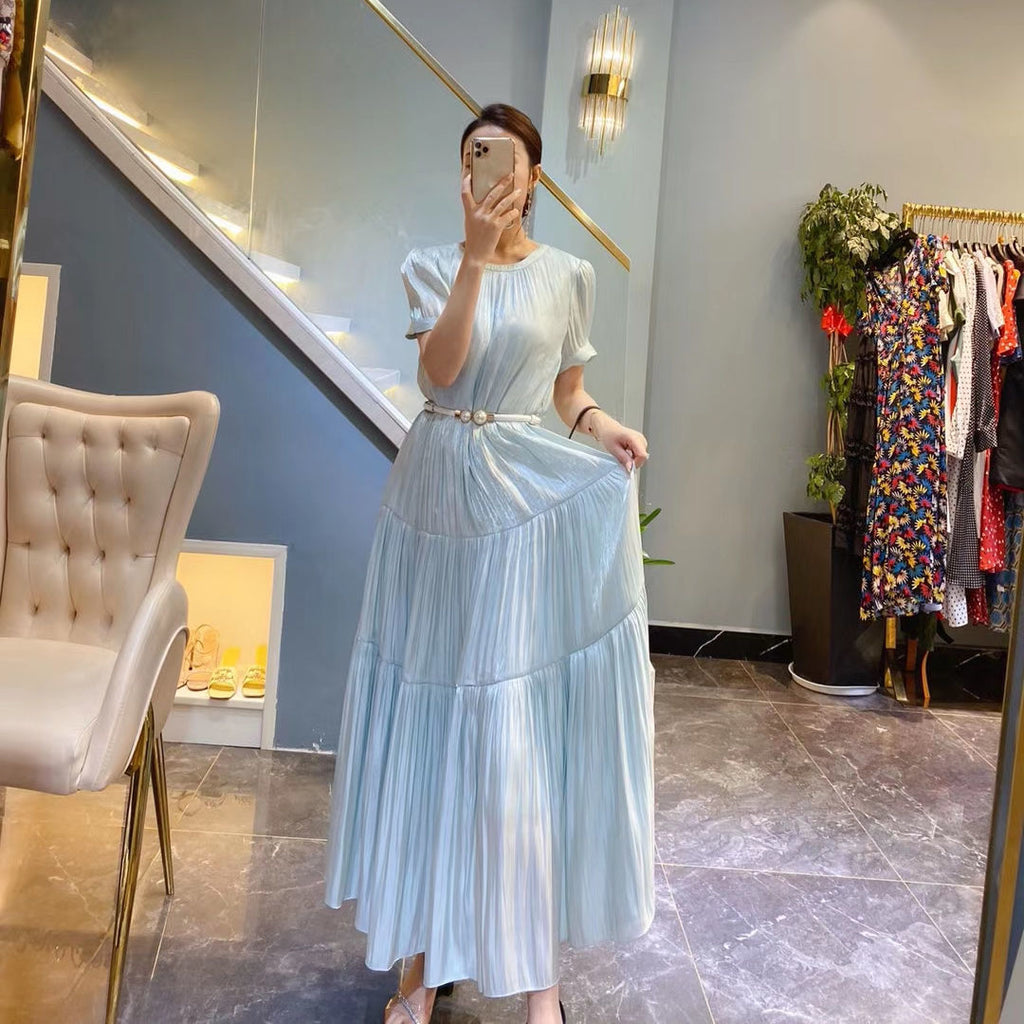 Lovely Fairy Retro Folds Temperament Long Skirt Loose Waist Swing Dress