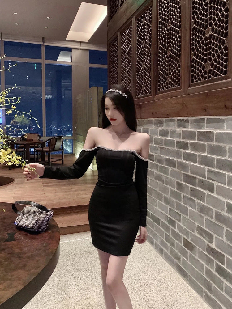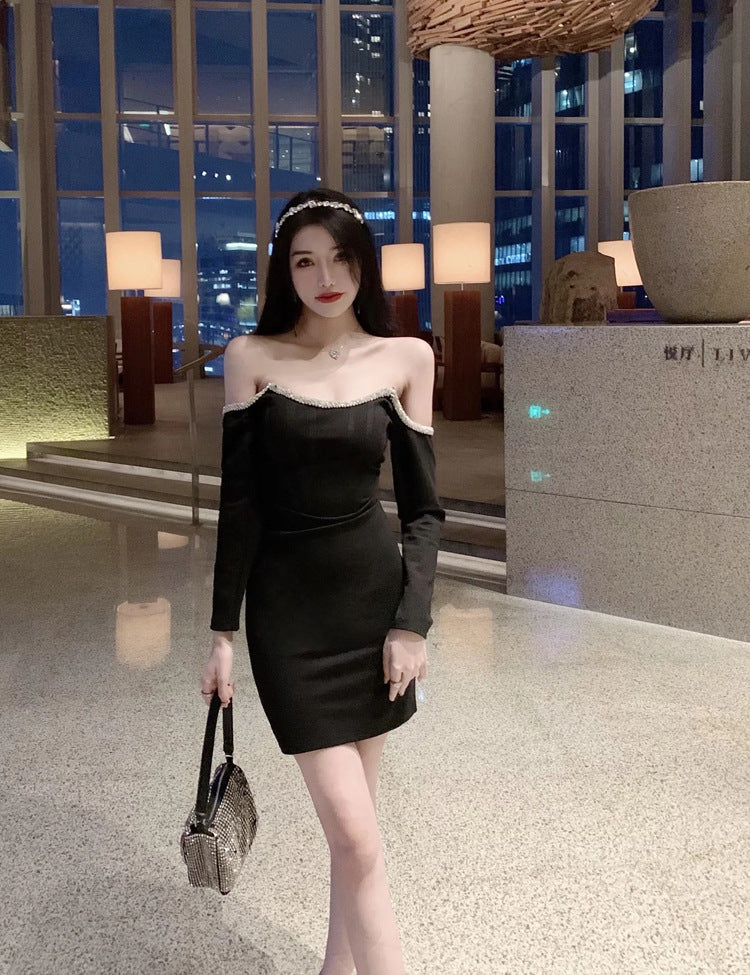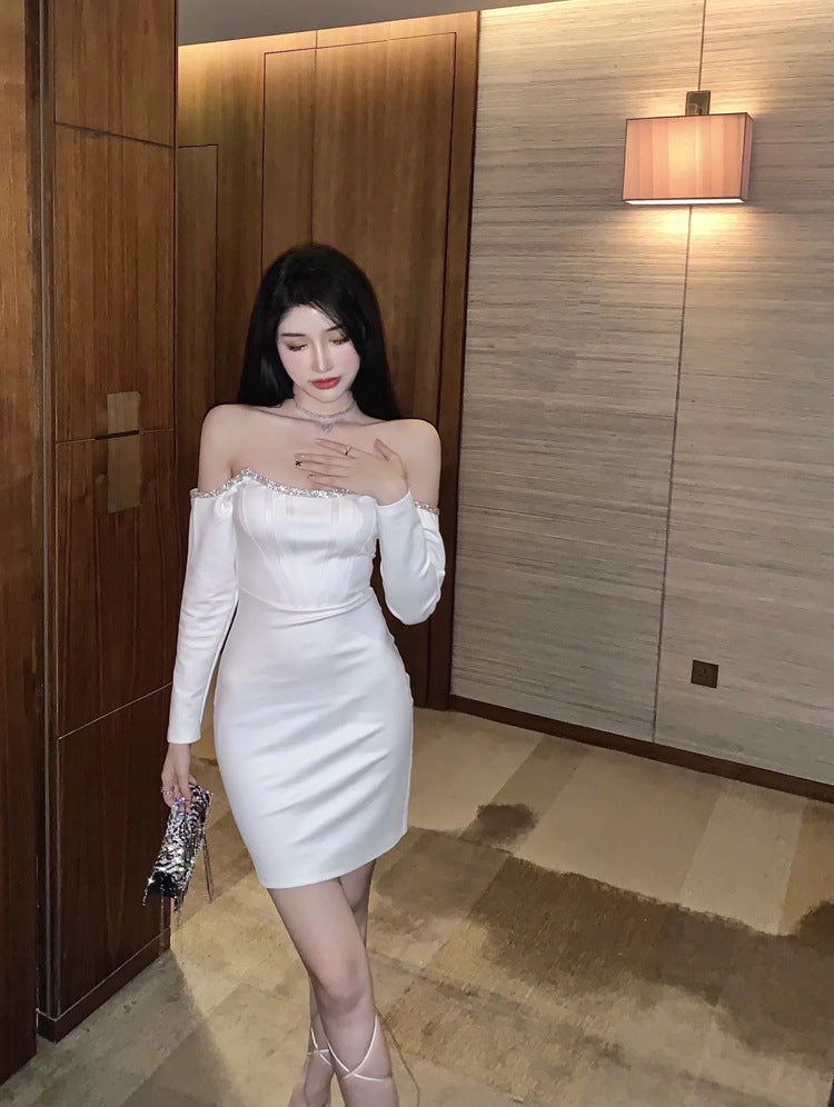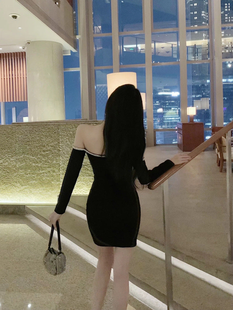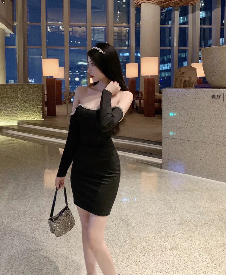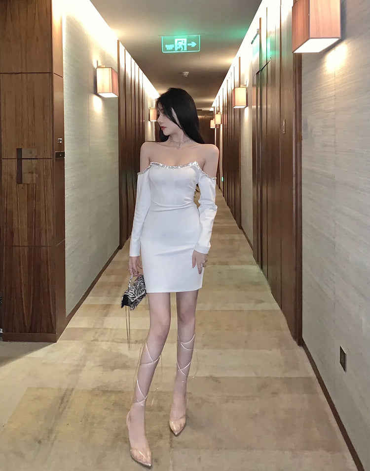 Off Shoulder Tube Top Long Sleeved Stitching Bodycon Hips Waist Women Dress