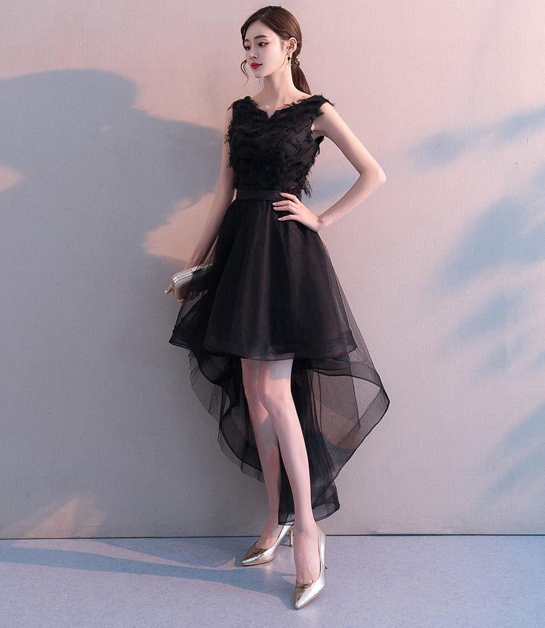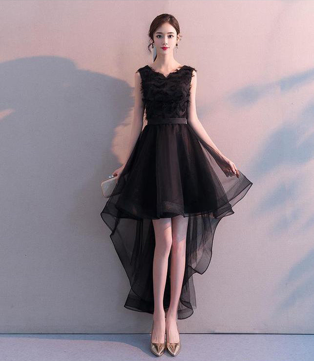 Perfect Look Temperament Women Gothic Goth Black V Neck Sleeveless Irregular Length Hem Party Dresses Prom Dress
