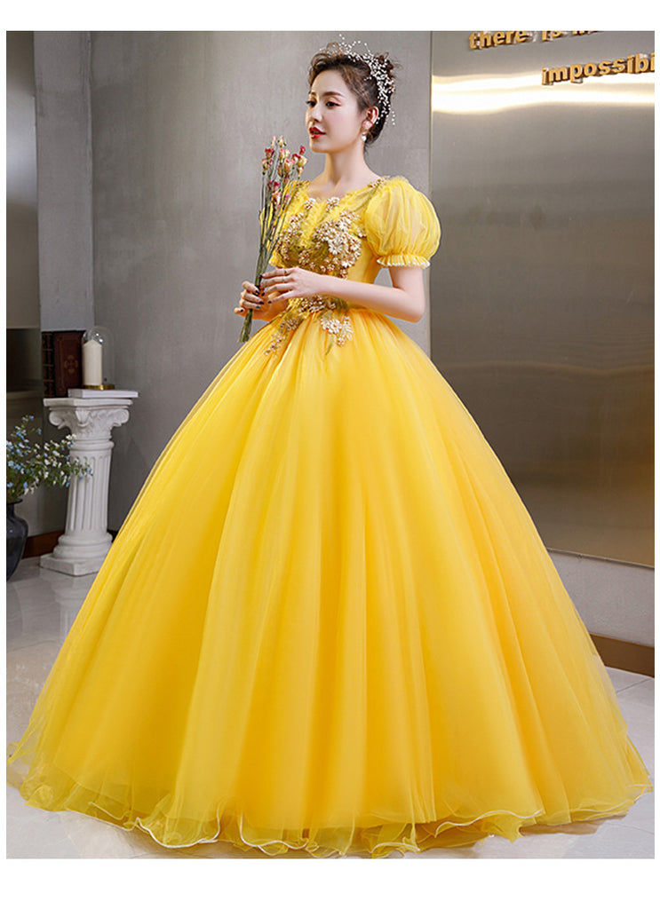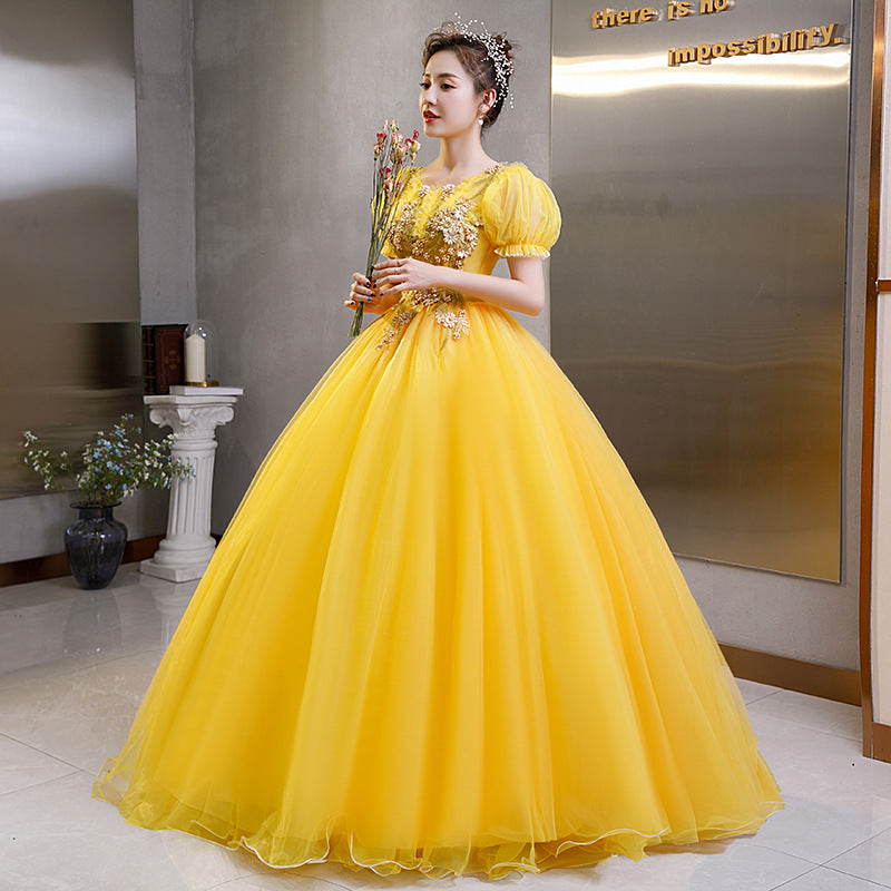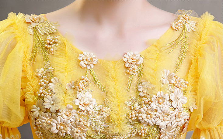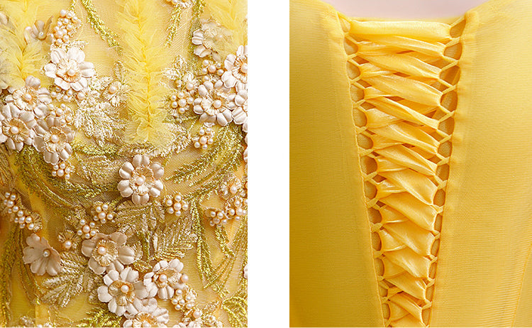 Plus Size Yellow Evening Dress Elegant Banquet Half Sleeve Embroidered Puffy A line Princess Gauze Gown Dress