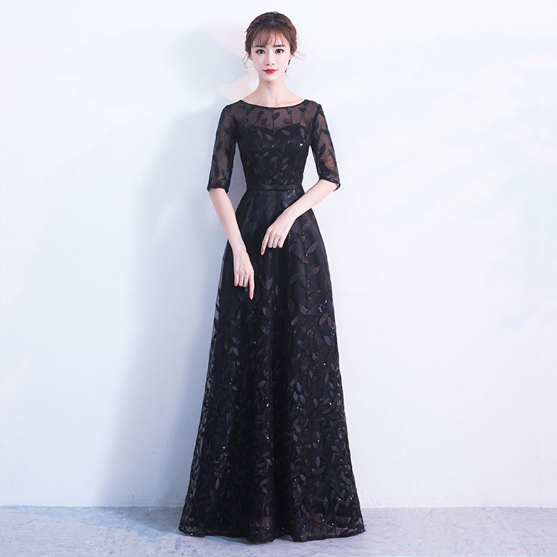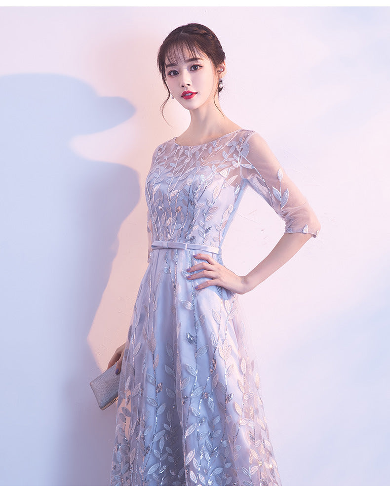 Pattern: Floral Printed, High Waist, Mesh Half Sleeves, Long Prom Dress