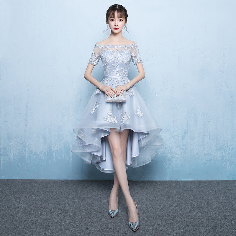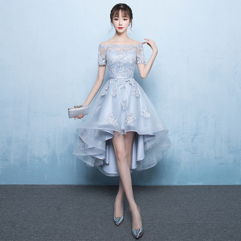 Pretty Party Banquet Asymmetrical Long Prom Bridesmaid A Line Dress
