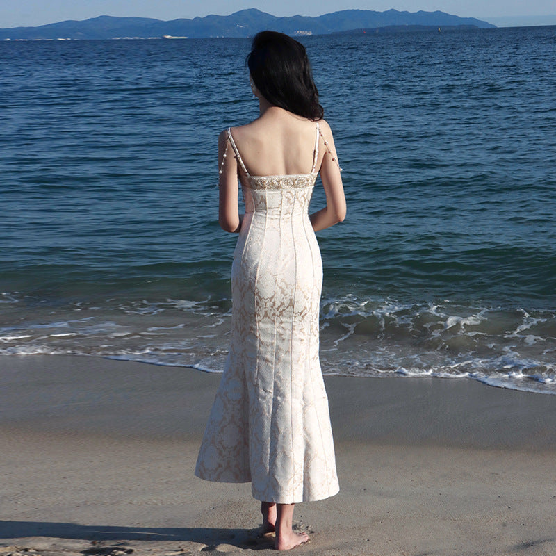 Retro Sexy V Neck Evening Elegant Embroidery Lace Dance Party Skirt Fishtail Dress
