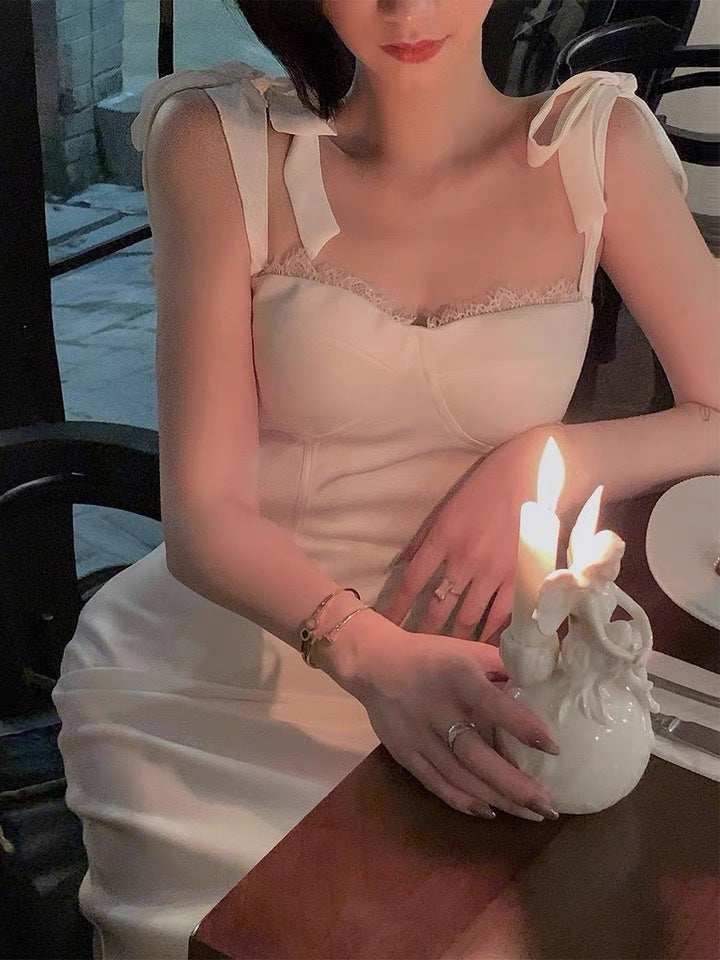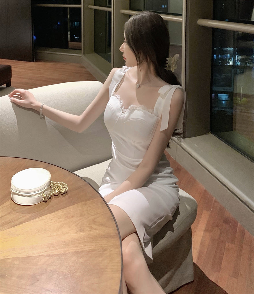 Retro White Temperament Tube Top Design Sling Banquet Party Dress