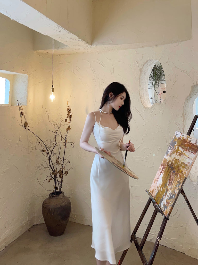 Satin Sexy Temperament Elegant Women Wear Soft Smooth Texture Dress