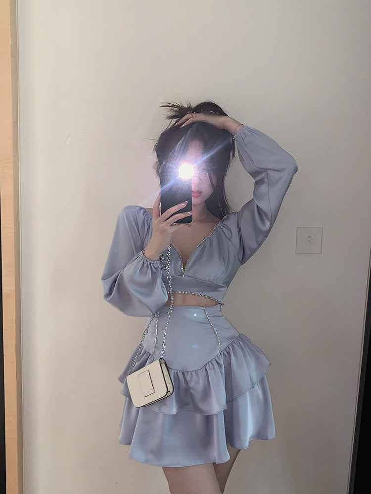 Sexy Fashion Temperament Hollowed Out Waist Encrusted Long Sleeves Dress