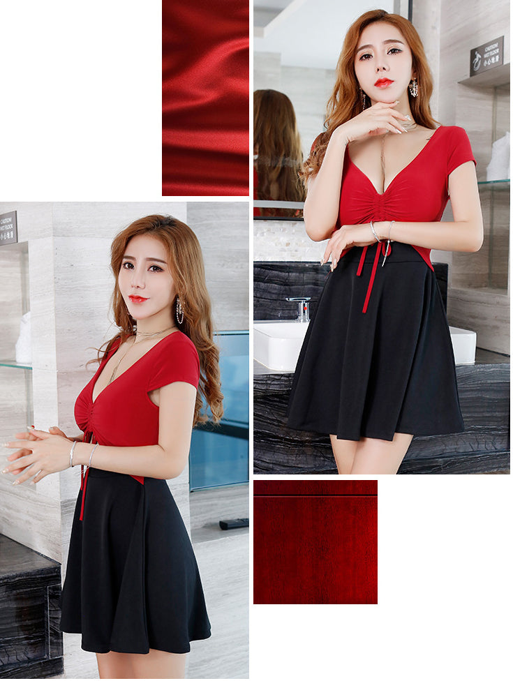 Sexy Pretty Women V Neck Short Sleeves Front Bow Tie Up Night Clubbing Meeting Short Dress