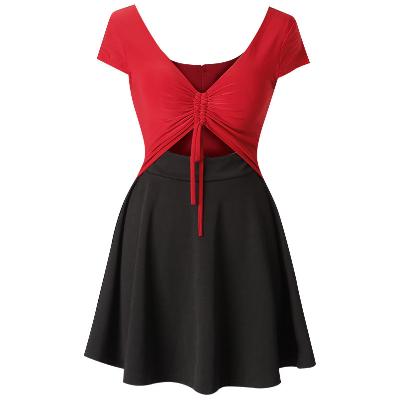 Pattern: Front Bow Tie Up, Short Sleeves, Short Dress