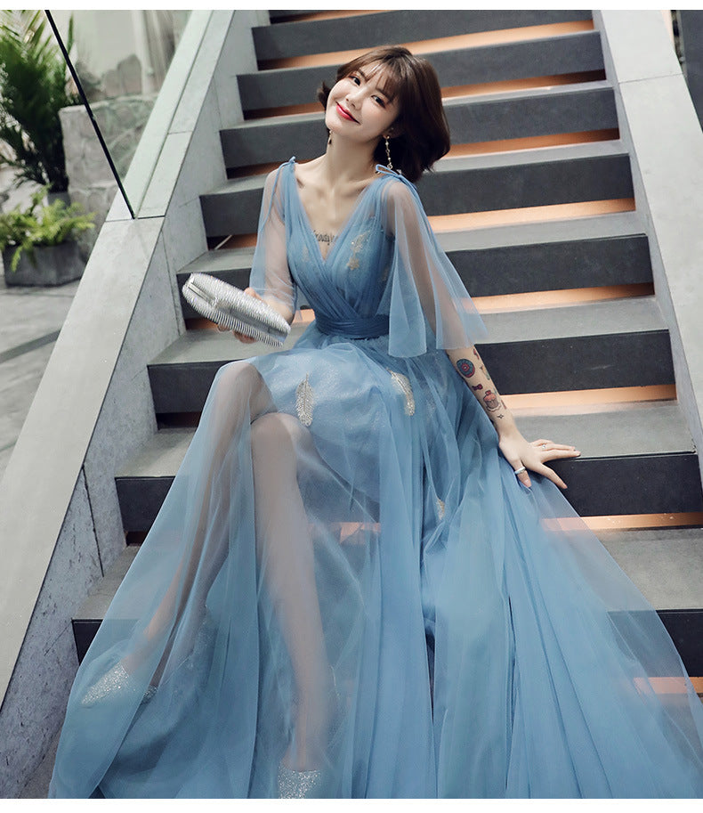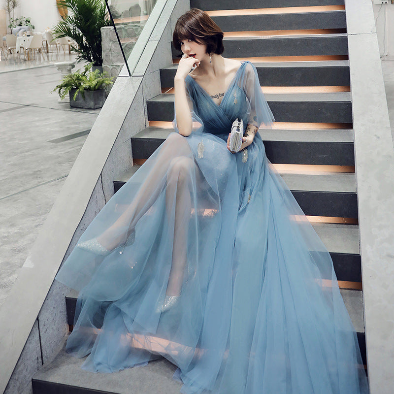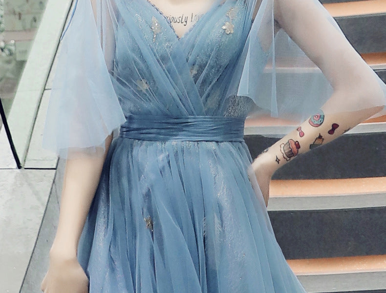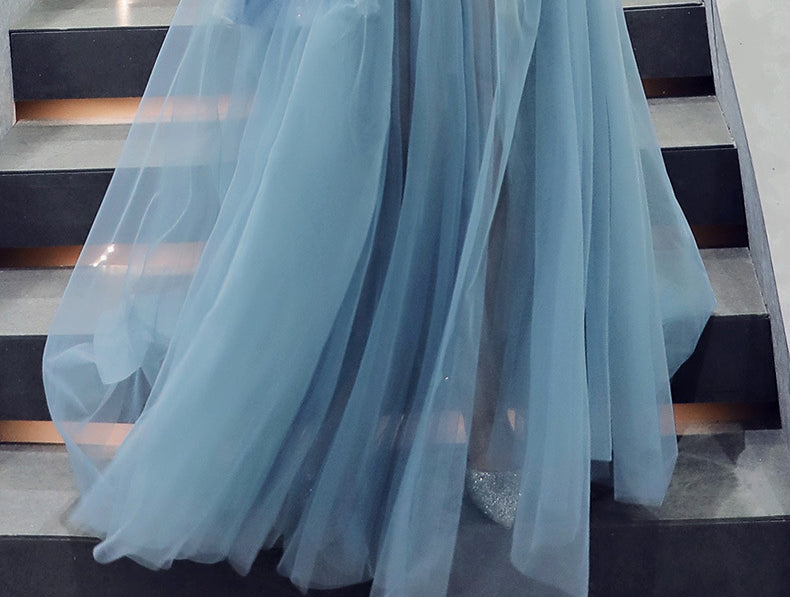 Sexy Temperament aura Elegant Beautiful Queen Women Floral Beading Wrap High Waist Banquet Evening Dress