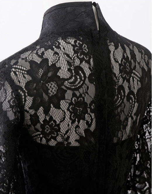 Pattern: Stand Collar, Lace Half Length Sleeves, Long Dress